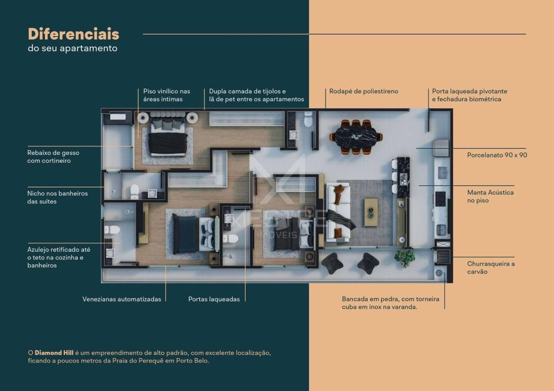 -Nicho nos banheiros das suítes;